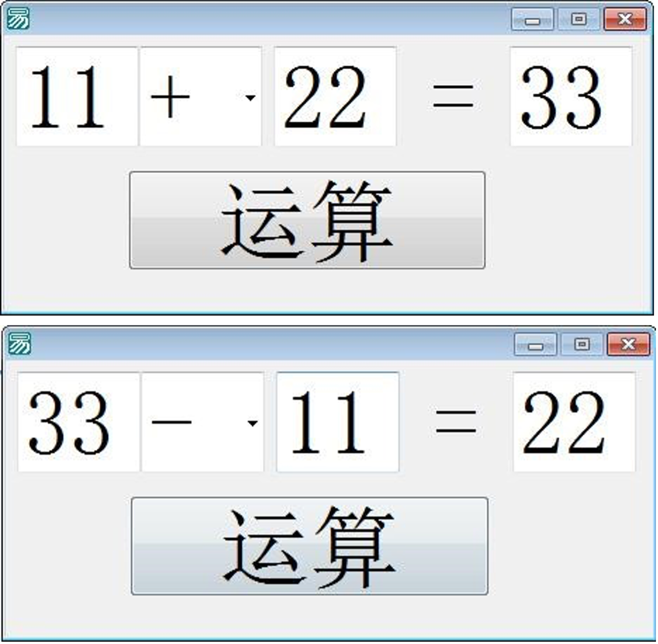 按照作业图设计界面,图中用到“编辑框”、“组合框”、“按钮”,过程为输入两个运算数,然后选择中间的运算符号(仅会做加减运算即可),然后点击“运算”按钮,在第三个编辑框计算出结果并且显示即可。注意组件名称格式为:类型_功能,比如:按钮_运算,编辑框_第一个数等。