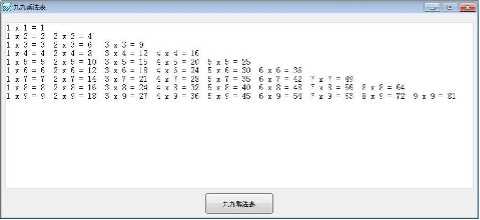 先熟悉计次循环和变量循环,因为后期还会常常用到循环,陆续大家慢慢就熟练了。编写代码时候尝试选择两种循环中的一种或者两种循环结合,用按钮或者其他方式控制让程序运行后显示出九九乘法表即可,显示效果要求处理好对齐问题,做到规整好看,可能要用到:字符(#tab 键)或者取空白文本()等实现对齐。继续注意界面组件和代码的命名规范(按钮_、编辑框_、程序集_、局部_、全局_ 等),在代码中每一段或者每一句代码的意思大家可以用注释的方式写在代码中,便于记录和理解。